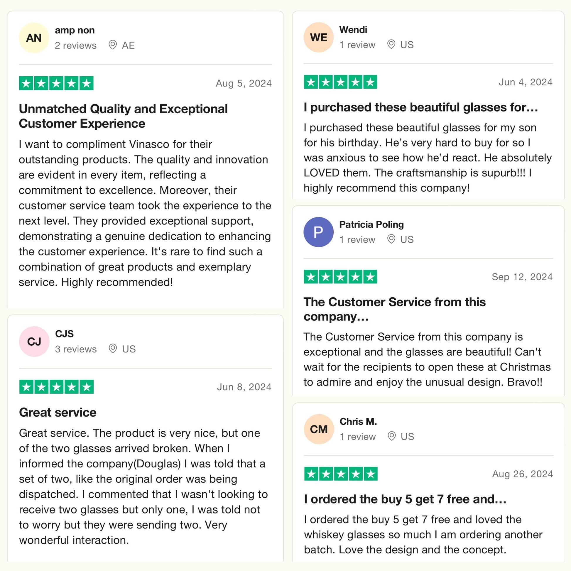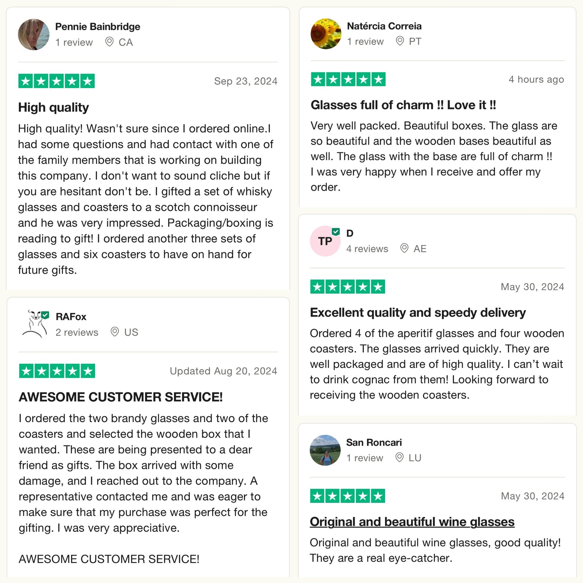 Our glasses are shipped inside a sleek black display box, perfect for both showcasing and storing your items.